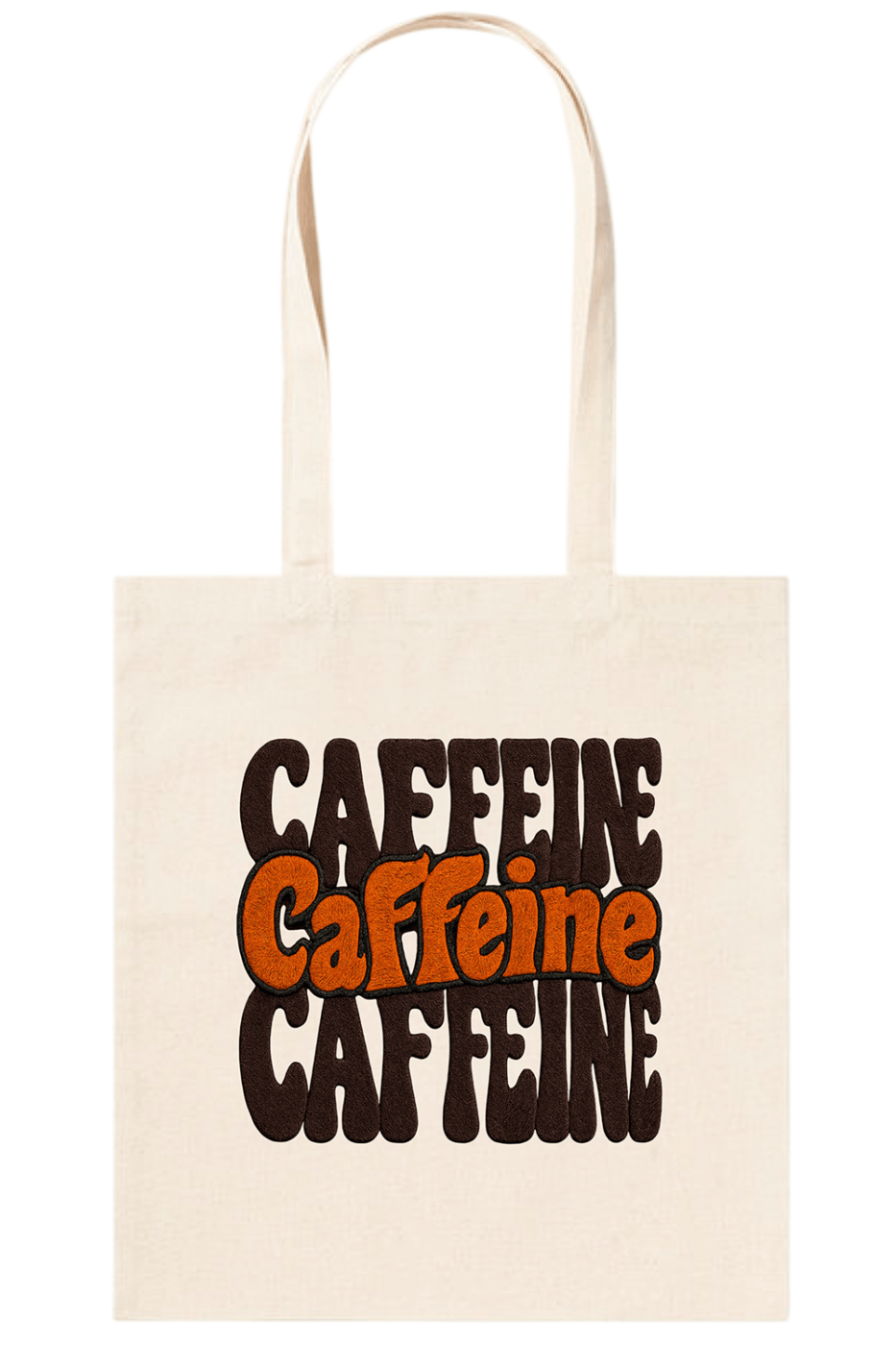 Bolsa “Needs Caffeine” combina comodidad y actitud. En la parte frontal, el pequeño estampado con la palabra “NEEDS” y una taza de café refleja tu energía mañanera, mientras que en la parte trasera el diseño retro con el texto “CAFFEINE” en letras grandes y efecto vintage destaca tu pasión por la cafeína.